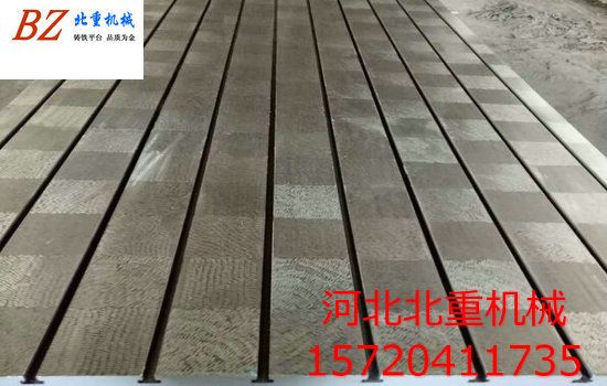 焊接平臺(tái)在澆注完成后開(kāi)始用振動(dòng)清沙和人工除沙并清理焊接平臺(tái)毛坯周?chē)膹U棄物,清沙完畢后鑄件自然放涼并開(kāi)始diyi次回火(時(shí)效處理),鑄件在回火窯升溫至780°并在窯種和窯的溫度同時(shí)降至50°方可出窯。焊接平臺(tái)的鑄件在粗加工的時(shí)候使用的是濟(jì)南產(chǎn)龍門(mén)刨床和斷面銑床使焊接平臺(tái)四周及上下面成正方形或是長(zhǎng)方形,如果需要開(kāi)T型槽必須在刨完平面后放置一天后才能開(kāi)T型槽或是U型槽、矩型槽等加工。如果客戶(hù)需要的精度較高個(gè)光潔度較高,那經(jīng)過(guò)粗加工后必須用我廠自有的昆明機(jī)床廠產(chǎn)的6000*3000的數(shù)控龍門(mén)銑床進(jìn)行精加工,數(shù)控龍門(mén)銑床加工后的精度直線度和平面度每米誤差0.008mm,光潔度可以控制在1.2以?xún)?nèi)經(jīng)過(guò)人工拋光后光潔度zui高可以達(dá)到0.8。如果在鑄鐵平臺(tái)上進(jìn)行鉆孔或是絞螺紋孔也可以用數(shù)控龍門(mén)銑床進(jìn)行一次性完成,精度高,光潔度高。