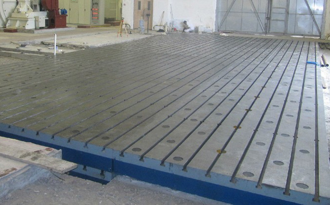 我公司為青島天藍化工廠設(shè)計制造的1500×3000mm焊接平臺8塊產(chǎn)品生產(chǎn)現(xiàn)場,焊接平板(焊接平臺)用于鉚焊工藝的基礎(chǔ)平板,工作面上有孔和T型槽,孔主要用來清理鉚焊時的一些鐵渣和焊接廢棄物,T型槽主要是用來固定焊接件。當(dāng)然,焊接平板也有用平面的,即無孔無槽。