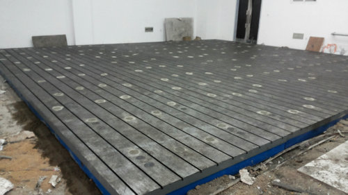 為沈陽客戶生產(chǎn)的設(shè)備運(yùn)行試驗(yàn)平臺(tái),T型槽平臺(tái),有2000*4000mmT型槽平臺(tái)拼接組成.采用頂絲和地腳螺栓的調(diào)整固定方式.